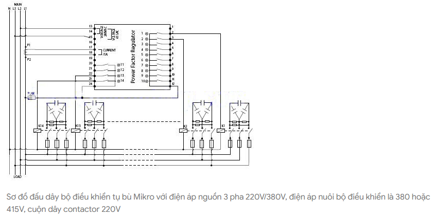 Sơ đồ đấu dây bộ điều khiển tụ bù Mikro
