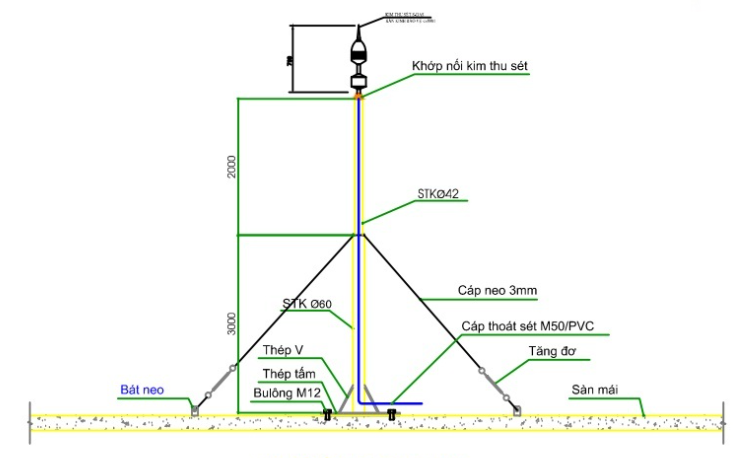 SƠ ĐỒ KỸ THUẬT LẮP HỆ THỐNG CHỐNG SÉT THEO TIÊU CHUẨN KTAT