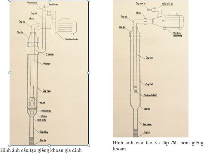 Là loại giếng khoan được làm ở các khu vực có mặt nước tĩnh nhỏ hơn hoặc bằng 9 mét, kết cấu của giếng khoan này gồm hai phần
