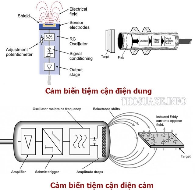 Sơ đồ nguyên lý hoạt động của cảm biến tiệm cận điện dung và điện cảm