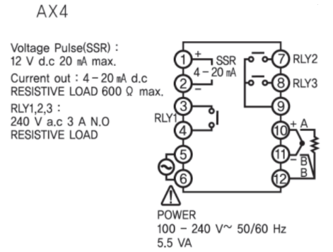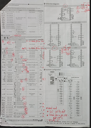 Các chân ngõ ra điều khiển của đồng hồ nhiệt. ngõ ra chính 4-20mA(chân 7+và chân 8-). Ngõ ra Alam: Alam1(chân 19 và 21), Alam2(chân 20 và 21). Sau khi kiểm tra cơ cấu chấp hành và sơ đồ đấu nối dây đã chính xác ta tiến hành cái đặt các bước như sau.