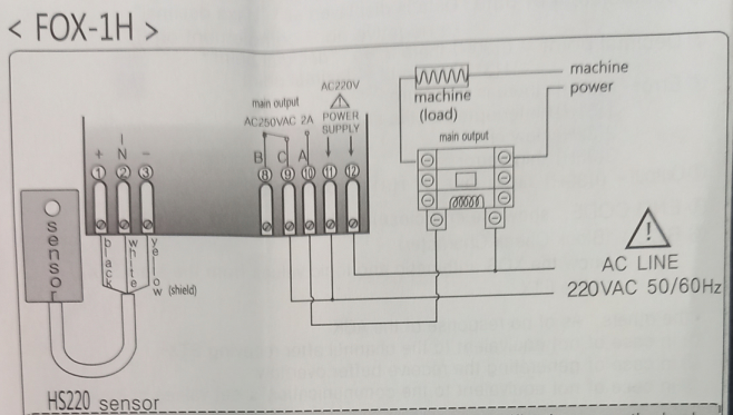 Lưu ý: ngõ ra của bộ điều khiển nhiệt độ FOX-1H chỉ cho phép điều khiển ở mức tải dưới 2A. Đối với trường hợp cần điều khiển thiết bị lớn hơn 2A, chúng ta có thể điều khiển thiết bị gián tiếp thông qua một relay kiến hoặc contactor.