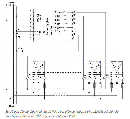 Sơ đồ đấu dây bộ điều khiển tụ bù Mikro